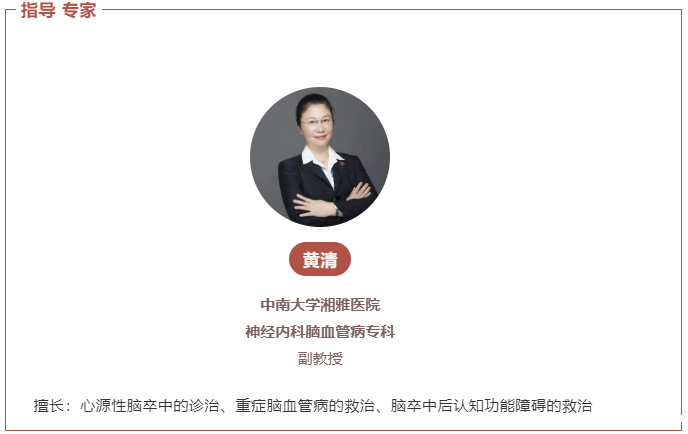 中南大学湘雅医院神经内科脑血管病专科 黄清 副教授