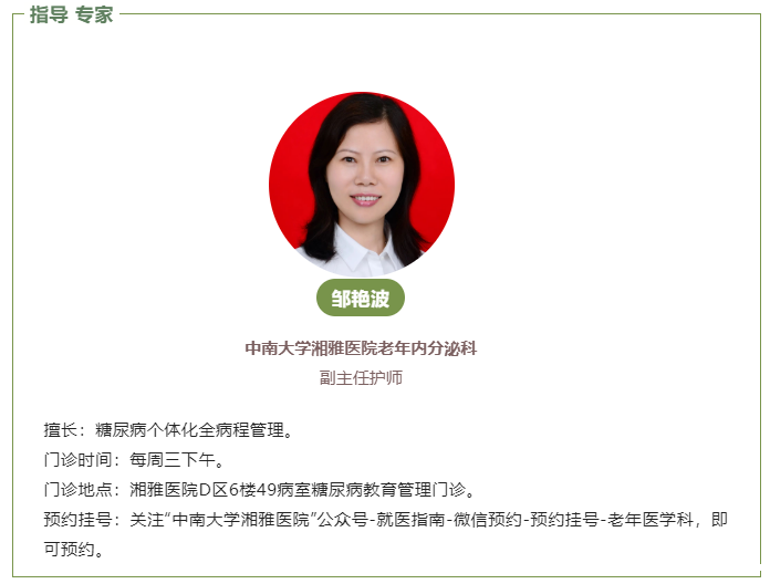温馨提示:合并多并发症或病情复杂的糖友建议去内分泌糖尿病教育管理门诊或营养门诊,让专业医护人员为您提供个体化饮食指导。