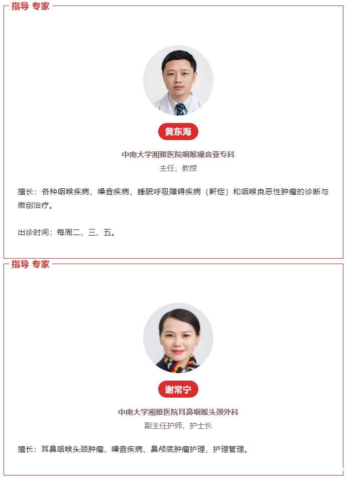 中南大学湘雅医院咽喉嗓音亚专科 黄东海 教授