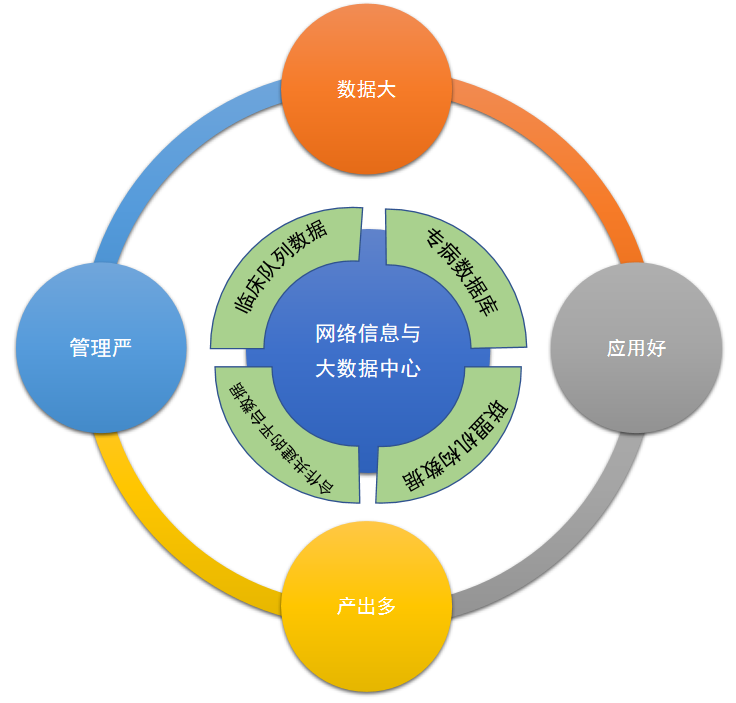 按照国家和医疗行业的临床数据标准规范,平台对数据汇聚过程进行严格把关,湘雅临床数据库、联盟单位数据库、各专科专病库及研究队列等四大来源的数据汇聚后,根据不同的业务范围对数据进行清洗、对齐、质控等数据治理,最终将统一标准的数据存储到大数据中心库。为加强临床数据与样本资源的管理,促进相关资源规范、合理、高效地利用,按照临床数据与样本资源库管理委员会制定的《多中心临床数据库管理办法》、《科研数据资源安全与质量管理办法》、《科研数据资源共享管理办法》等规范性文件,提供预研选题、知识查新、方案设计、数据提取和统计分析服务,既符合国家“原始数据不出院、结论数据可开放”的医院数据使用原则,又实现了数据使用的可管、可控、可用。